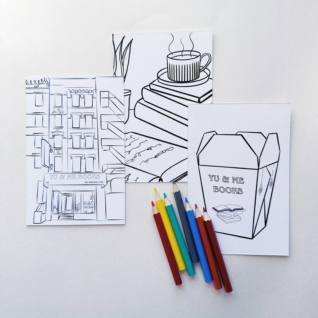 - Includes 9 color-in postcards (3 each of 3 designs) and 7 mini colored pencils